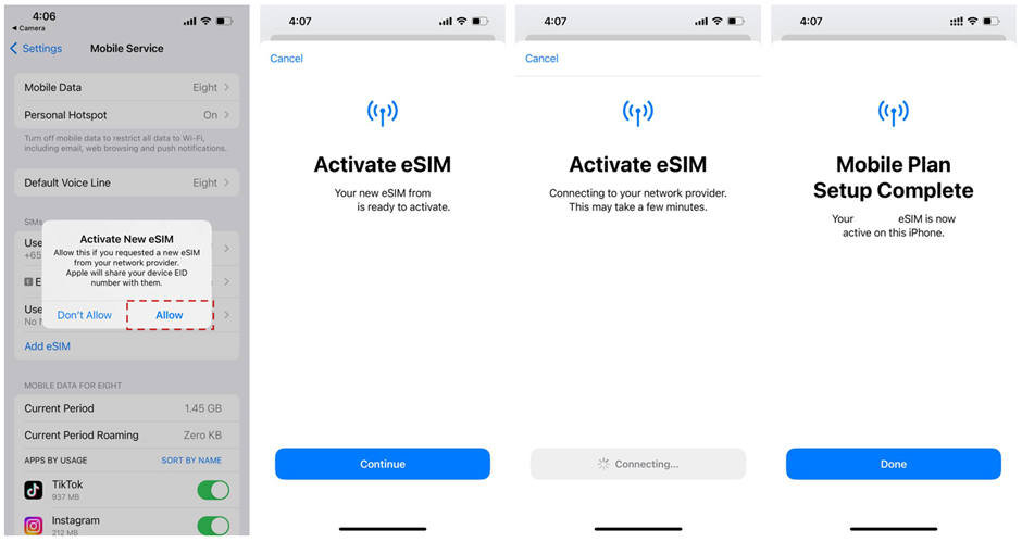 How can I install and activate my eSIM (Android, iOS)?